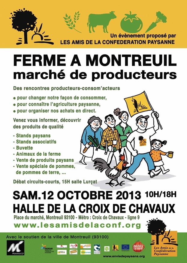 Cet évènement est proposé par les Amis de la Confédération paysanne avec le soutien de la ville de Montreuil. Ce marché est inscrit dans le mois de la consom’action de la Campagne « Envie de paysans » initiée par la Confédération paysanne.