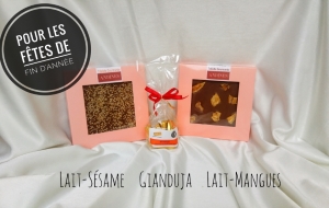 Les giandujas sont de retour et avec eux, deux nouveaux chocolats ! Découvrez notre délicieux chocolat au lait en version parsemé de mangues ou de sésame ! Miam :) !