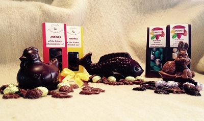 Les chocolats de Pâques sont arrivés chez Andines ! Vous pouvez retrouver des œufs au chocolat fourrés et des fritures mais aussi Jeannot Lapin, Ketty la poule et Tetra le poisson en chocolat noir ou au lait, pour ravir tous les gourmands.