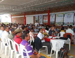 La majorité des participants sont des paysans représentant les 1300 familles membres de la coopérative et représentées par un Conseil d’administration de 10 élus. Sont également présents l’équipe technique de Cosurca (une vingtaine de personnes, totalement dévouées à l’action de la coopérative), les délégués d’une dizaine d’autres organisations paysannes du Sud de la Colombie (Départements du Valle, Narino, Huila et Cauca), et quelques partenaires étrangers, dont Andines.