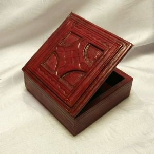 - NBB07 - Boîte Touareg en bois et cuir repoussé - 12cm x 12 cm x 5 cm