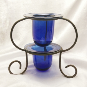 AVR53 - AVR53 - Photophore en fer forgé + coupelle en verre bleu soufflé