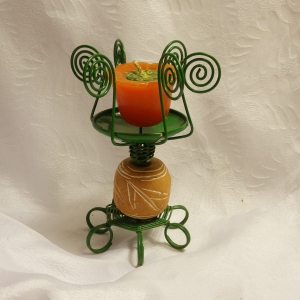 ECM01PF - ECM01PF - Bougeoir en fer forgé+ frisure+ perle terre